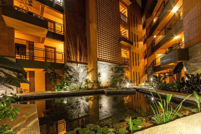 22 rooms-Built-up area-20000 sft. A boutique hotel in the heart of the city with a central water court.